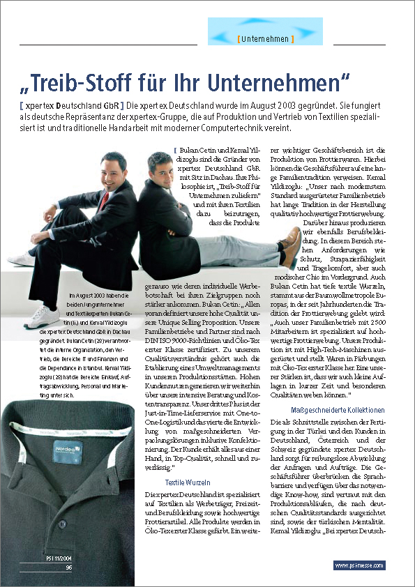 Das freelance team empfiehlt dieses Tool selten. Dennoch gibt es Erfolgsstorys. Für das Unternehmen xpertex, spezialisiert auf individuelle Textillösungen für Promotion, Werbung und Merchandising aus Frottee haben wir ein zielgruppenorientiertes, vergütetes Interview für das Fachmagazin PSI Journal geführt.