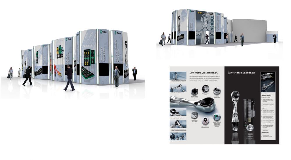 Für Wera, dem Marktführer für Profiwerkzeug, ist die internationale Werkzeugmesse Practical World wichtigstes Verkaufs- und Kontaktinstrument zu den weltweiten ansässigen Kunden. Als temporärer Partner der Marketing-Abteilung entwickelte das Freelance Team die Messestandgestaltung, Produktanleitungen und Broschüren in 10 Sprachen, Plakate, Displays sowie 3D-Illustrationen und -Animationen.