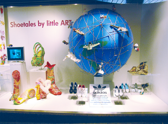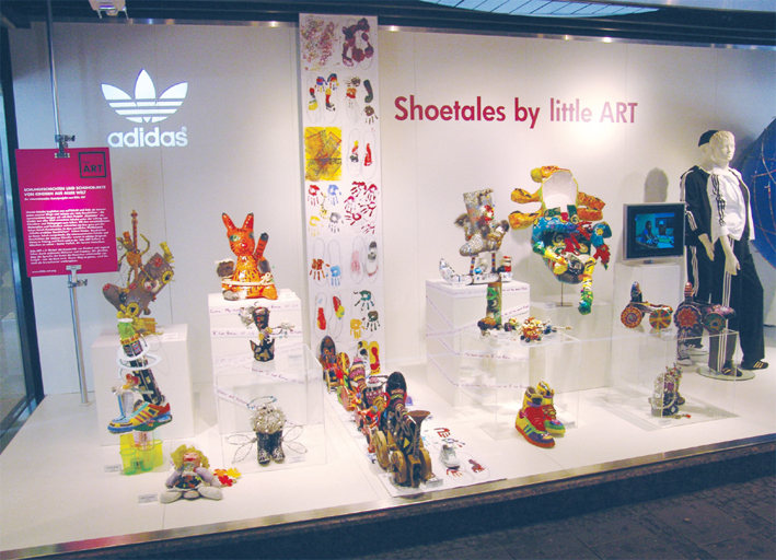 Seit 2007 läuft mit Unterstützung von adidas Originals das Projekt Shoetales. Über 200 Kunstwerke von Kindern aus Seoul, Buenos Aires, New York, Zürich, Moskau, Ankara, Kalkutta, Kapstadt, München, der Sinai- Wüste sowie aus Sibirien erwecken mit unterschiedlichen Materialien und Techniken Schuhe zum Leben. Wie die Schuhe wollten die Kinder mit ihrer Shoe-Art Spuren in dieser Welt hinterlassen und Menschen fantasievoll in eine gemeinsame bunte Zukunft führen.