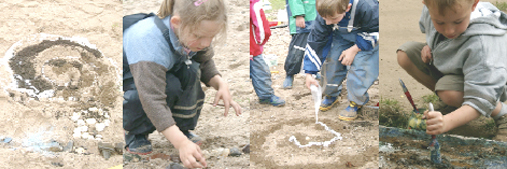 Zu den Themen Experimente mit Malutensilien, Papierobjekte, Asche, Erde, Sand und Naturmaterialien, etc. haben wir diverse Kinderprojekte veranstaltet.